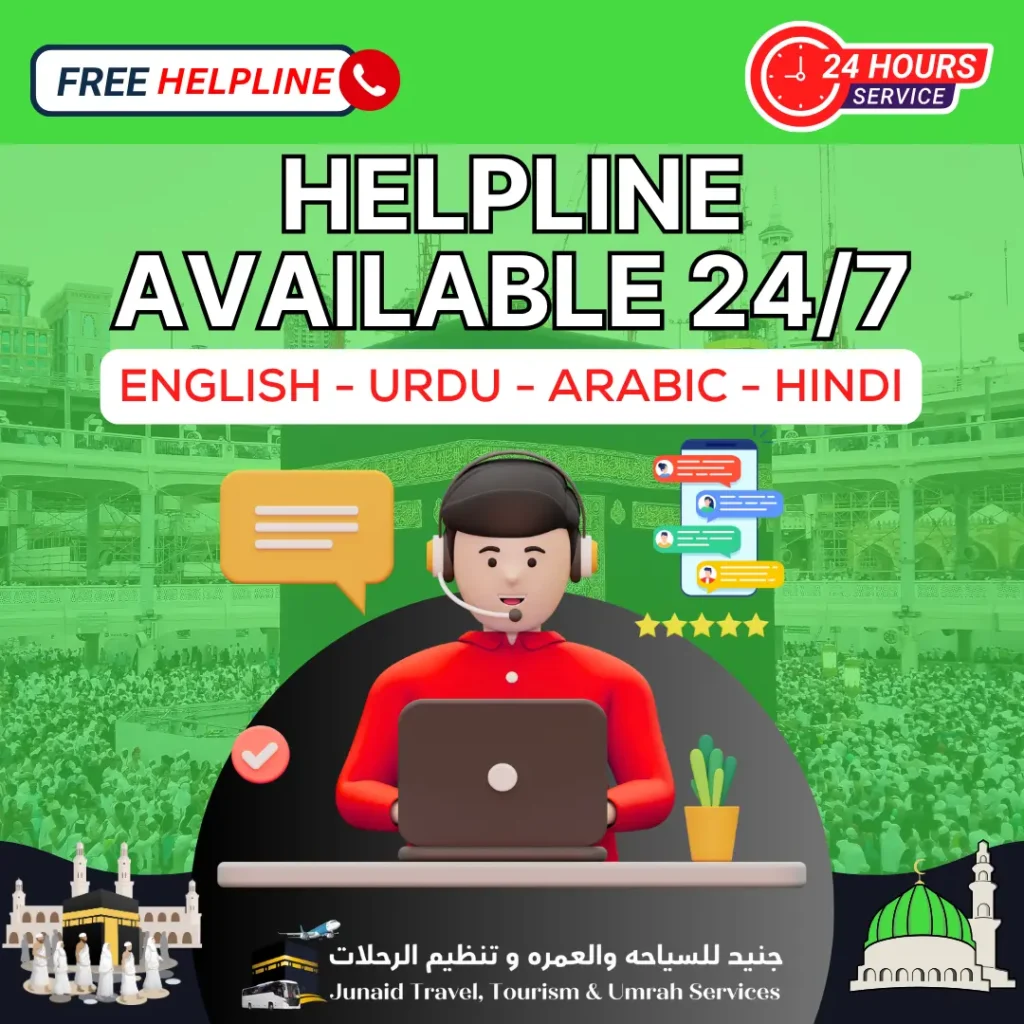 Planning your blessed Umrah journey? Need help with booking your bus, hotel, or Umrah package? Our dedicated helpline is available 24 hours a day, 7 days a week. Completely free of charge.